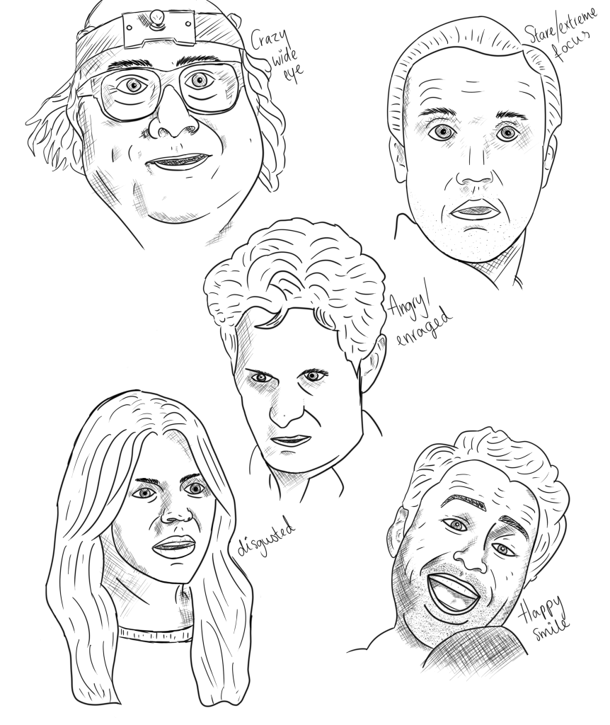 This week’s challenge is to complete a sheet of minimum 3 facial expressions.
